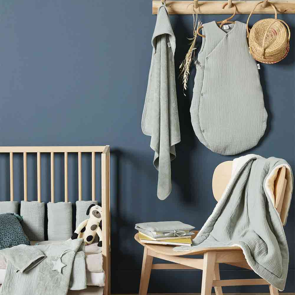 An adorable bamboo terry bathrobe with hood and belt in tone-on-tone double cotton gauze. Small bunny ears on the hood. This bathrobe opens fully at the front to drop baby in and wrap them in softness after bathing. As soon as baby sits down or stands, the bathrobe stays in place thanks to its tie belt. The Soft Bamboo collection combines the ultra-soft bamboo sponge and the double embossed cotton gauze, available in a range of trendy colours. Available in sizes 0/2 years or 2/4 years.
