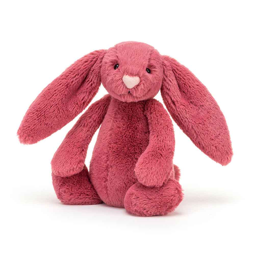 Bashful Cherry Bunny is a real sorbet candy, with soft, fruity fur and an irresistible pastel pink nose. Its long lopsy ears and small, well-held paws make it a cuddly companion, perfect for moments of tenderness.
