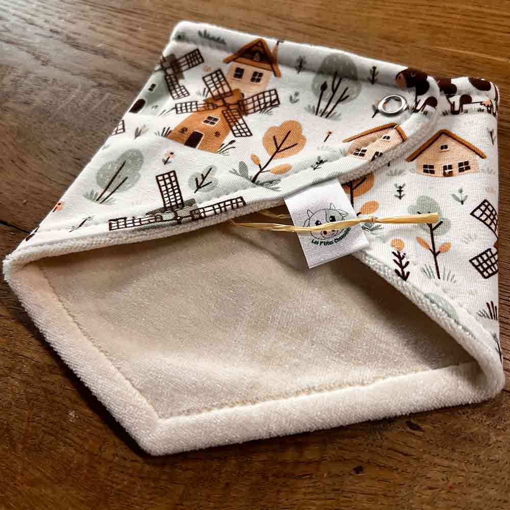 Bavoir en coton pouvant également être utilisé comme écharpe, une polyvalence optimale offrant une grande durabilité.