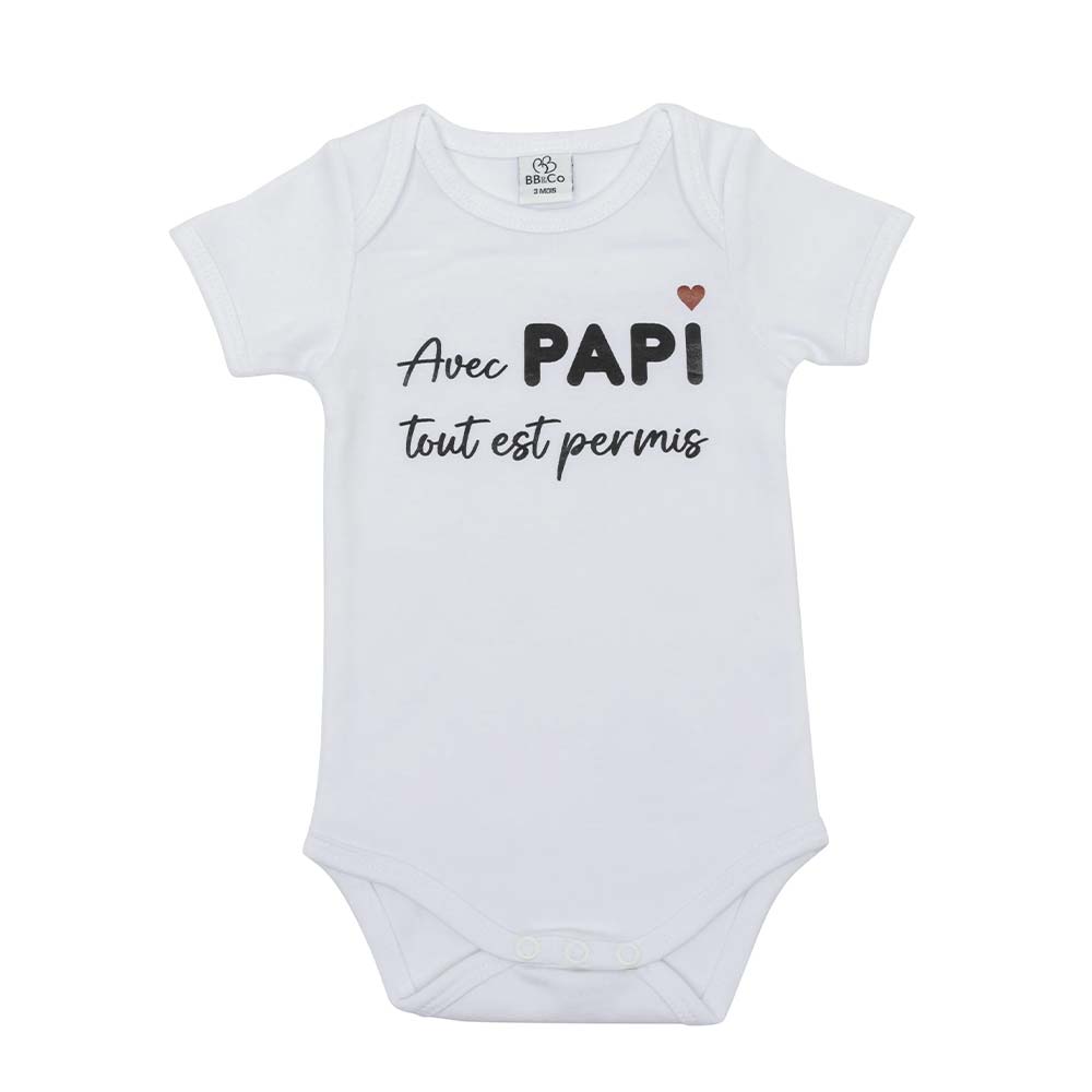 For adorable little ones, this pure cotton bodysuit has a message full of humor and tenderness. Available in short sleeves and long sleeves. American armholes.