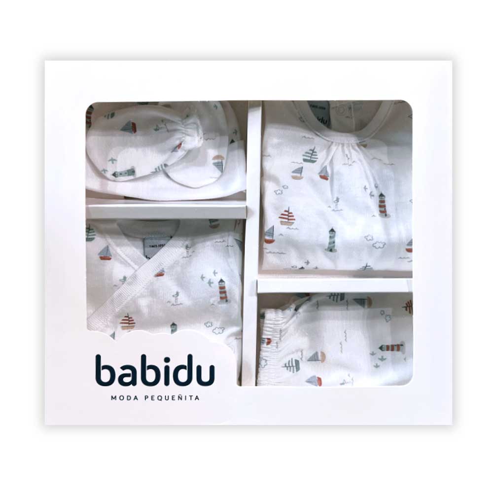 Le pack naissance TENDRURE de BABIDU offre une option pratique et élégante pour les premiers jours du nouveau-né. Ce pack est compris de 1 ensamble, 1 bonnet, des muffles et 1 body.