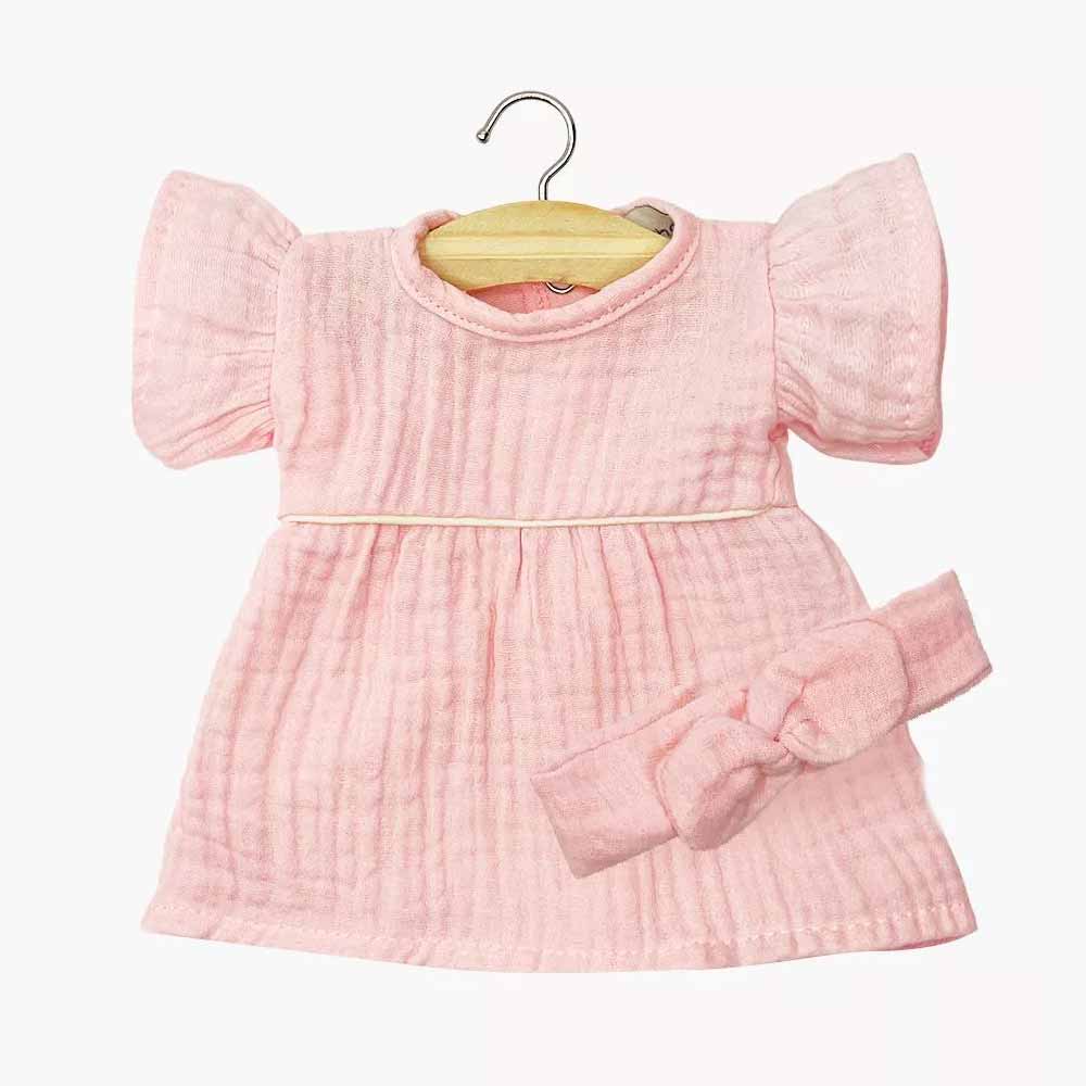 Daisy dress and its cotton gauze round bow headband for Minikane Gordis dolls 34 & 37cm.