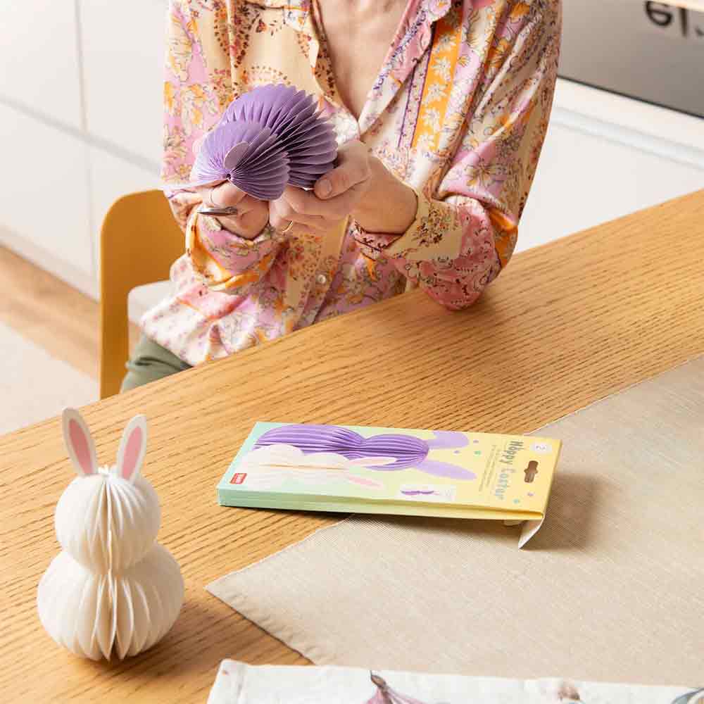 Are you looking for a decoration that immediately catches the eye? The Set of 2 Small Foldable Paper Bunnies – Hoppy Easter by Legami instantly sets the tone for the party: colorful, glittery and super cabbage, these bunnies are ready to jump right on your Easter table.
