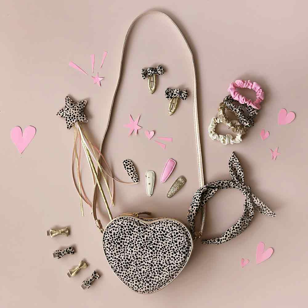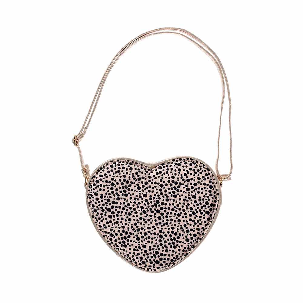 Show your wild side with our leopard heart bag. Made from our wild leopard print fabric and gold PU, this bag is a perfect addition to any outfit! Featuring a zipper closure, gold spotted lining, and adjustable gold PU webbing with a breakpoint for safety.