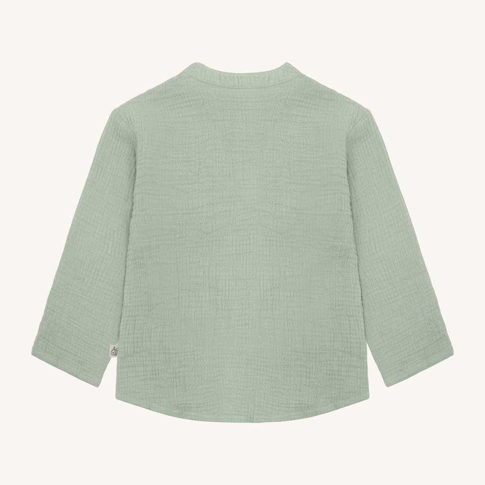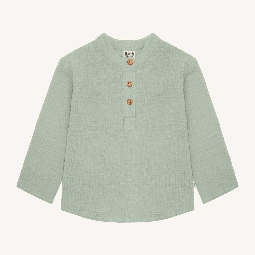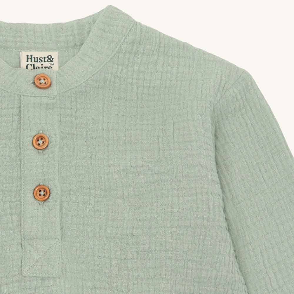 Chemise garçon Hust & Claire en mousseline couleur gris vert ideal pour l’été.