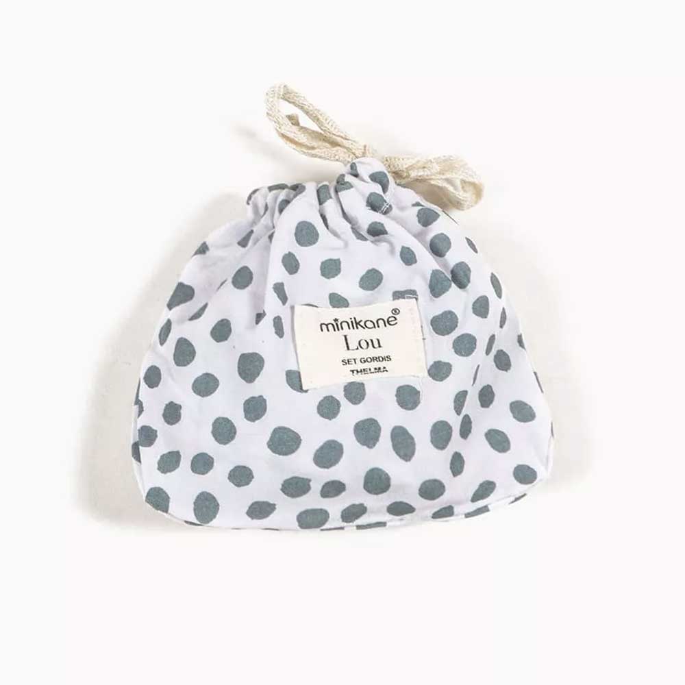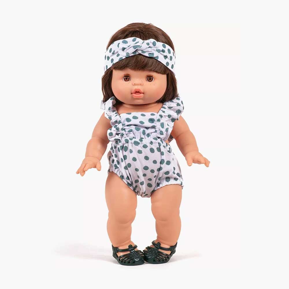 Retro Lou romper and cotton round bow headband set with pouch for Minikane Gordis dolls 34 & 37cm.