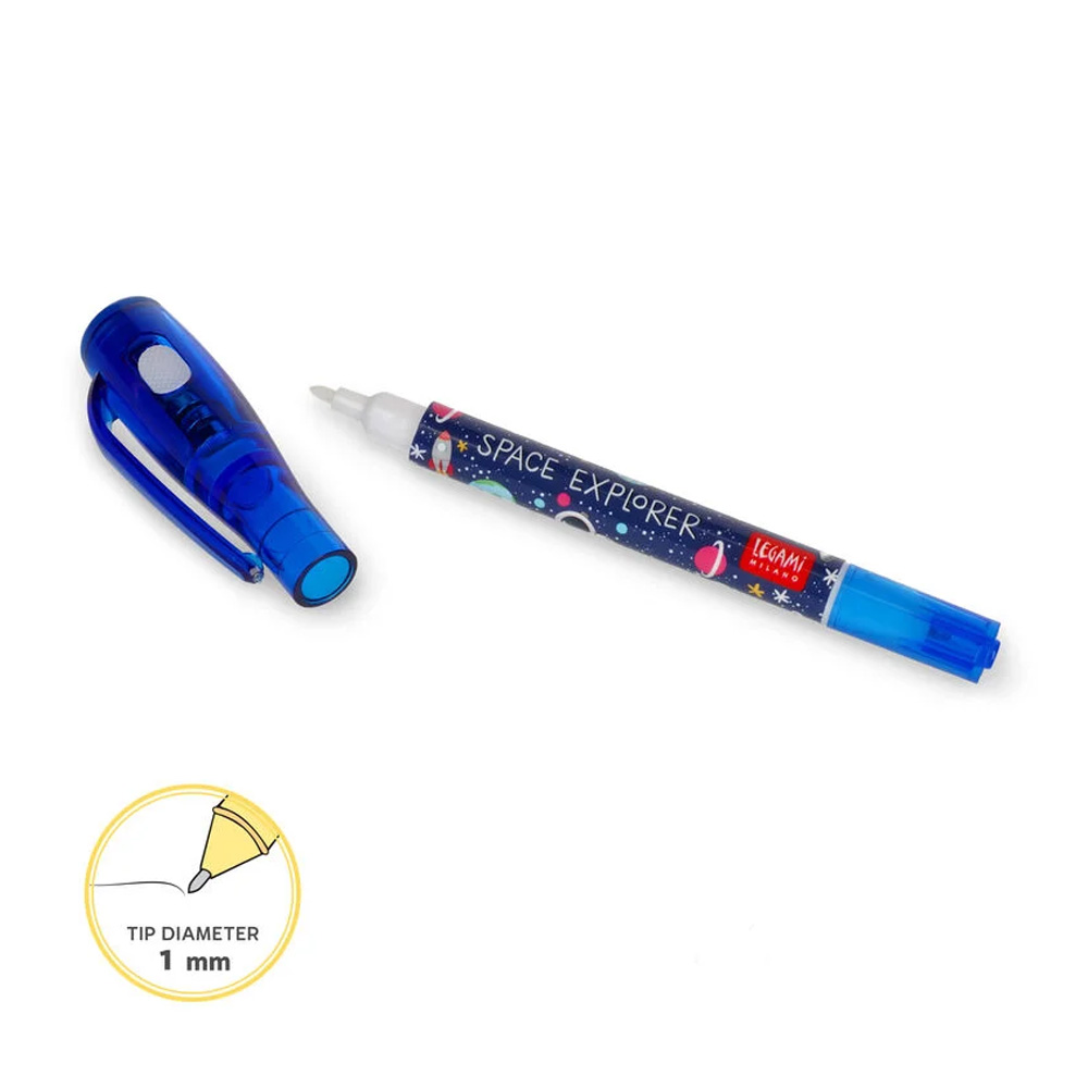 The make-up is there and it can’t be seen: this is the secret of the Magic Pen invisible ink pen on the theme of Space. Thanks to the double tip, you can write with classic blue ink and switch to incognito mode at any time thanks to the invisible ink. By simply activating the UV lamp on the cap of the pen, you will be able to read what you have written. Perfect for love letters, secret messages with your best friend, and little notes that go around the classroom… to the teacher’s test!