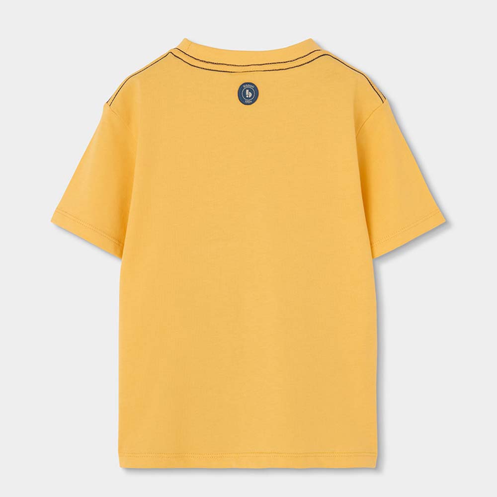 Boys’ cotton t-shirt with a fun pirate-themed design. The vibrant yellow background brings a cheerful and summery touch. The fabric is soft and comfortable, ideal for everyday use. Available in sizes from 12 months to 10 years, adapting to the child’s growth.