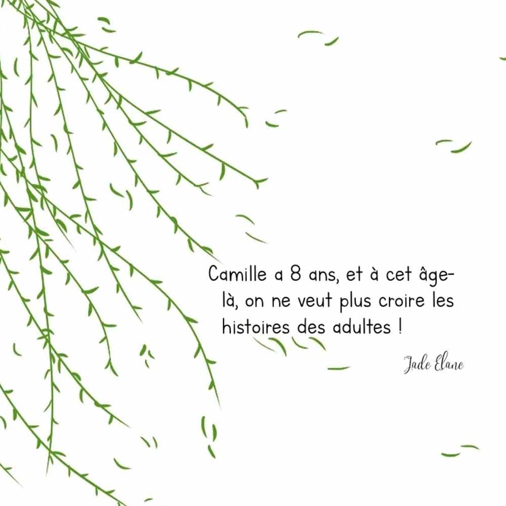 - Synopsis: Le livre raconte l’histoire de Camille. Il est présenté comme un récit sur papier blanc. Les éditeurs le décrivent comme un livre “pour les cœurs adultes, ceux qui savent que la beauté pique parfois”. Un papier dont la couleur est semblable à l’ivoire avec un effet tactile naturel et non-couché.