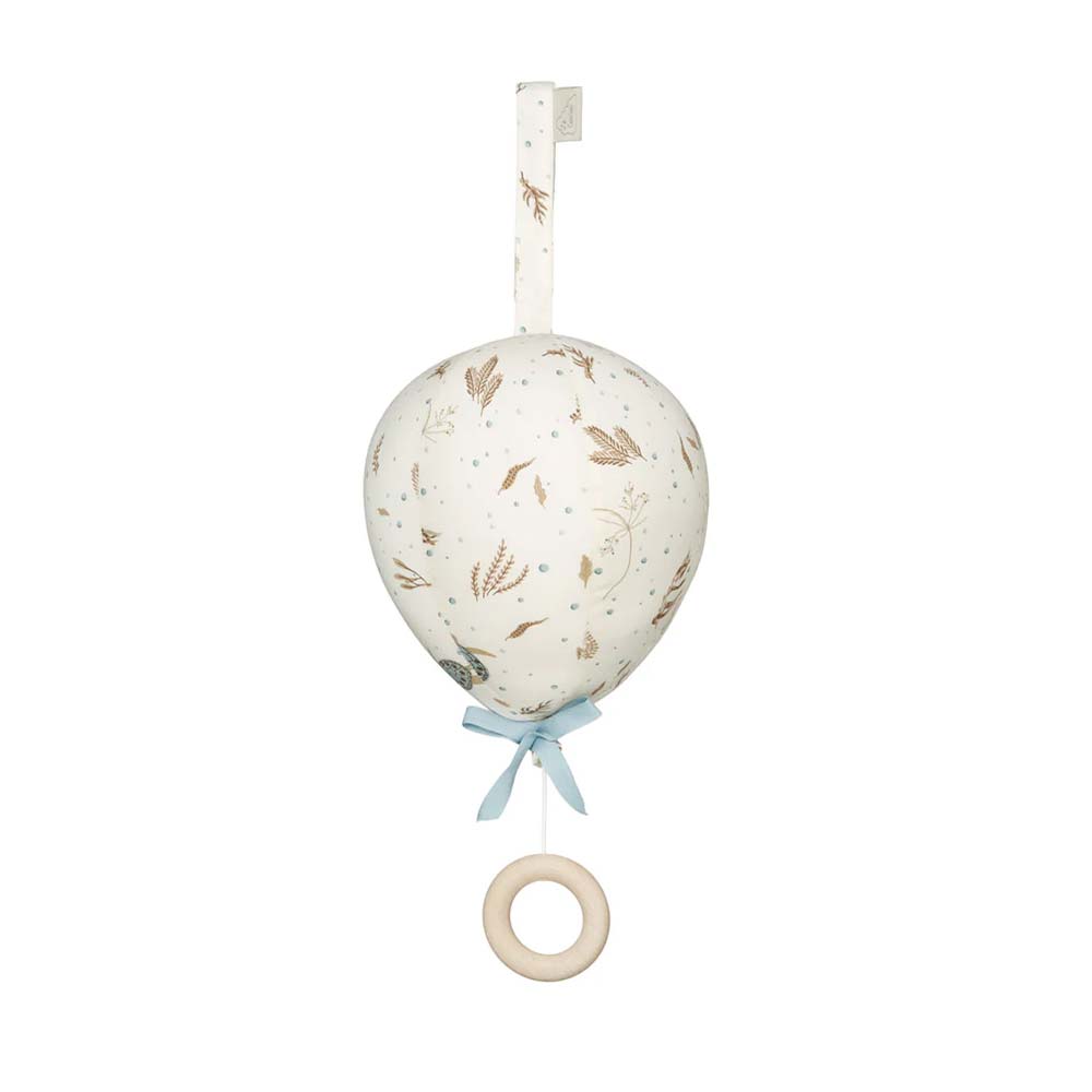 Mobile musical pour la chambre de votre enfant en forme de ballon avec cordon en coton orné d’un joli nœud décoratif. Tirez sur l’anneau en bois pour déclencher une douce mélodie qui apaisera bébé. Confectionné dans un beau tissu matelassé, disponible en différents imprimés.