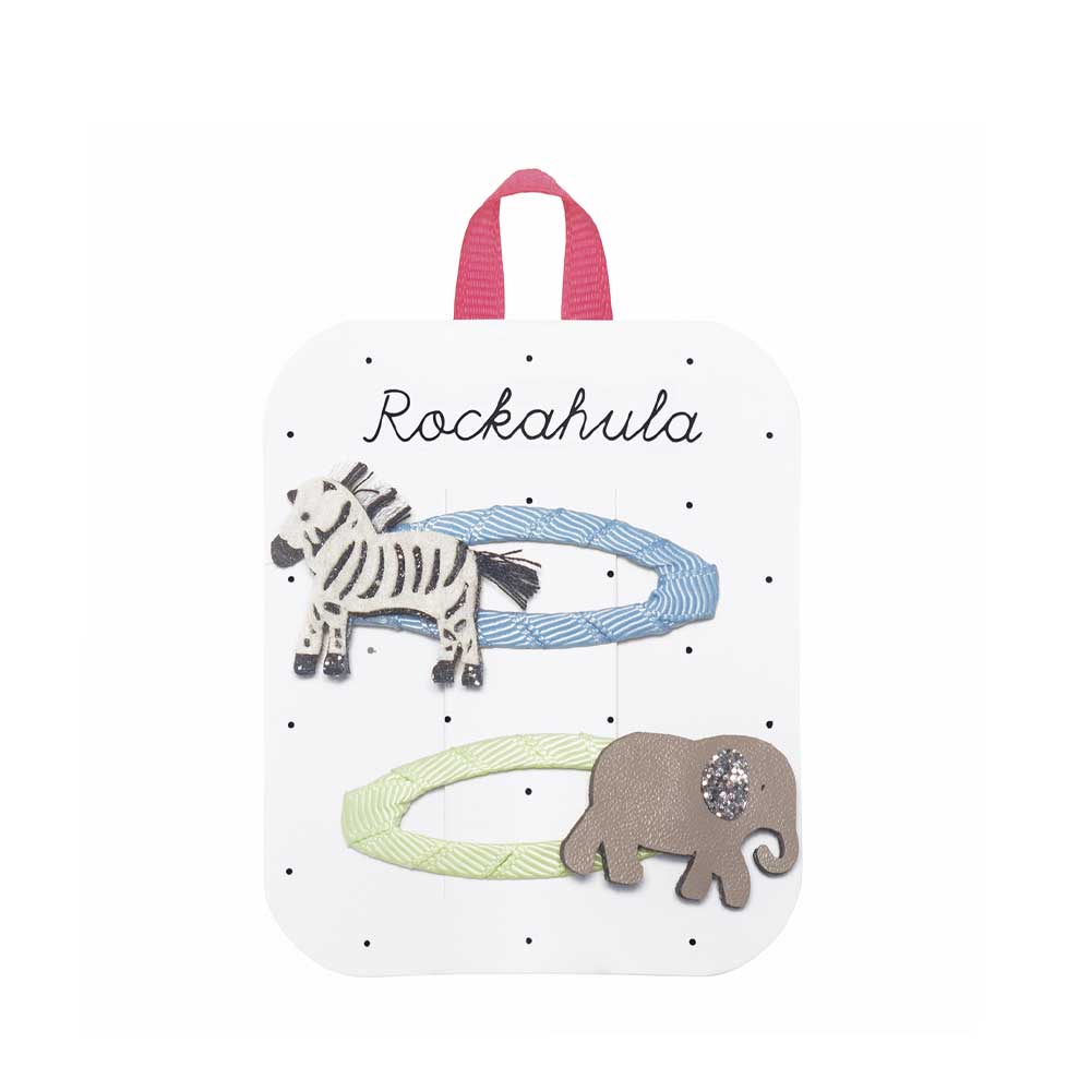 Cet ensemble de pinces à cheveux séduit par les jolis motifs d’animaux d’un éléphant et d’un zèbre.