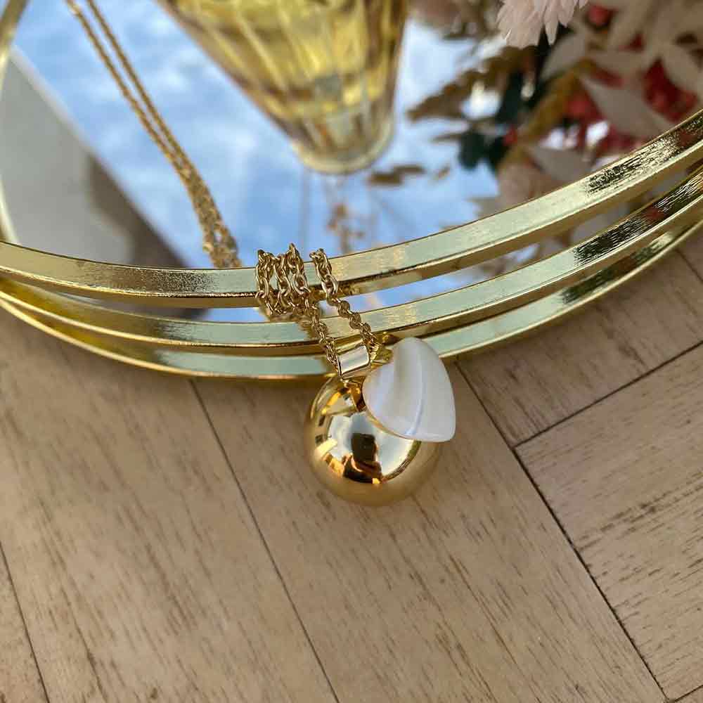 Finition : plaqué or 18 carat + pendentif cœur de nacre.