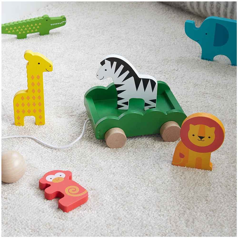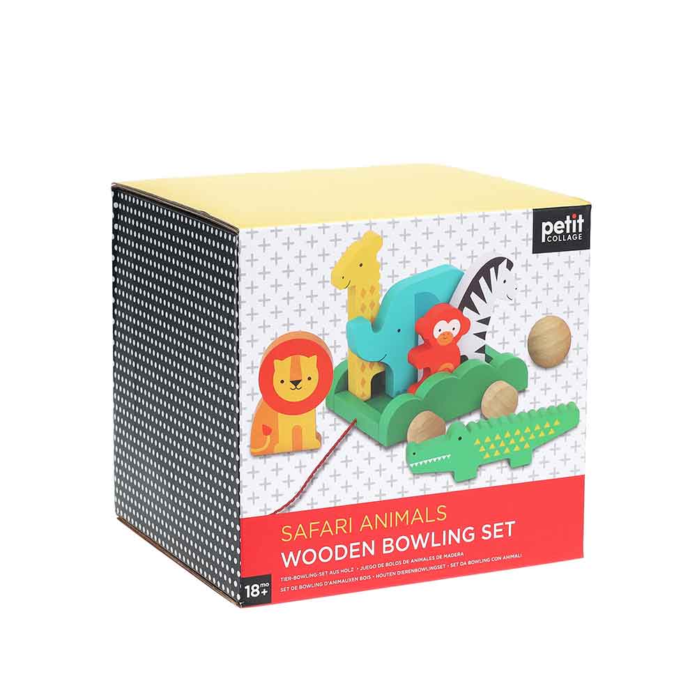 Les formes variées peuvent rendre certaines pièces plus difficiles à renverser que d’autres ! Lorsque le bowling est terminé, rangez ces joyeuses pièces de jeu d’animaux soigneusement dans leur chariot en bois, ou tirez-les pour continuer à jouer !