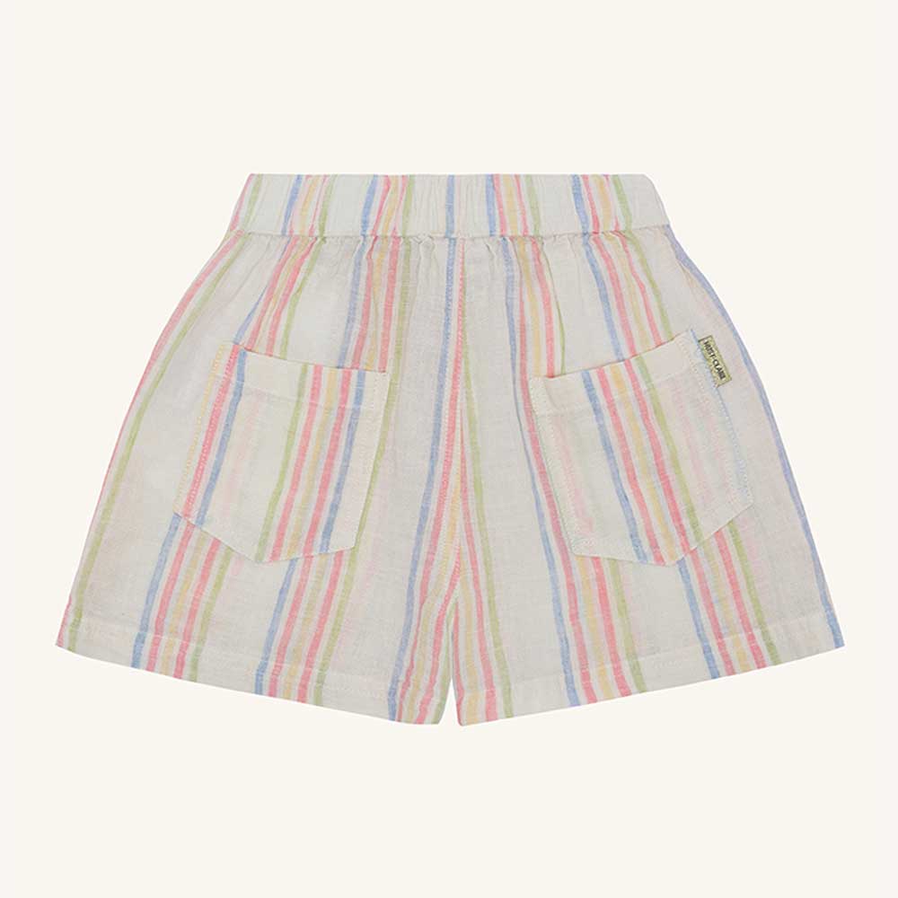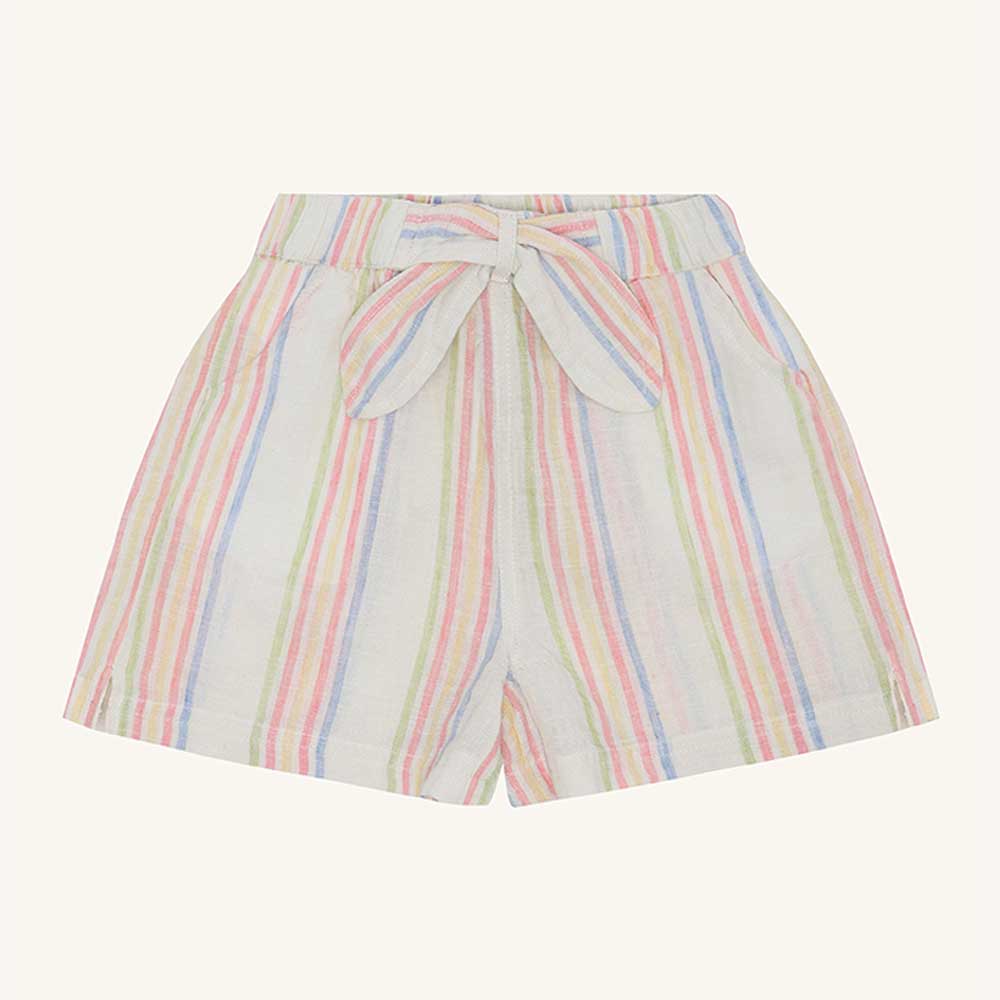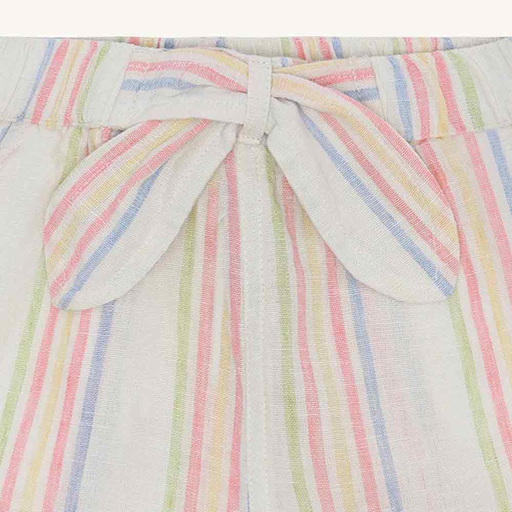 Ce short à rayures colorées de Hust & Claire accompagne votre fille avec style pendant les journées ensoleillées. Un rêve d’été léger et aéré en coton et en lin. La particularité de ce short en tissu est le merveilleux mélange de matériaux. Alors que le coton apporte de la douceur, la teneur en lin apporte une fraîcheur naturelle qui vaut surtout l’or pendant les journées chaudes.