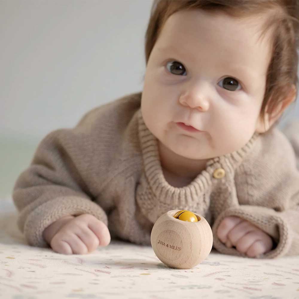 Le hochet musical Jingla boule de la marque Nina & Miles se distingue des hochets aux grelots banals par un son harmonieux, doux et clair qui ravira les petites (et grands) oreilles. Fabriqué en France par des artisans tourneurs sur bois et en hêtre français brut et non traité, c’est un jouet d’éveil musical pur et parfaitement éco-responsable.