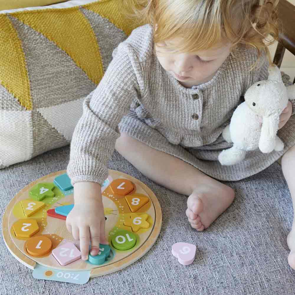 Il y a tellement de choses à découvrir ! Faites pivoter les poignées d’horloge ; soulevez les formes lumineuses et colorées ; changez facilement les cartes de langue ; et comptez les points pour faire correspondre les invites visuelles à l’heure correcte.