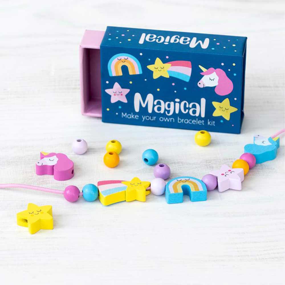 Soyez créatif avec les enfants avec ce kit de bracelet de perles en bois. Doté de perles vibrantes et colorées avec une pincée de magie, il est parfait pour susciter l’imagination et les encourager à concevoir leurs propres bijoux.