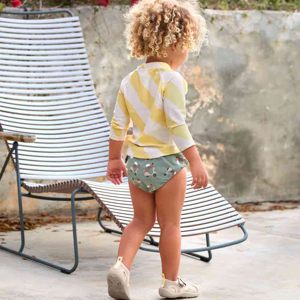 Le maillot de bain couche réutilisable LÄSSIG est idéal pour les vacances à la plage ou pour aller à la piscine. Ce maillot de bain couche en vert écume est une alternative écologique aux couches à usage unique. Sa doublure intérieure garde la peau des enfants au sec et les gros accidents ne se répandent pas dans l’eau. La couche de bain pour bébé LÄSSIG est une excellente alternative écologique aux couches à usage unique, car elle est à base de déchets plastiques qui ont été recyclés et transformés en un nouveau matériau.