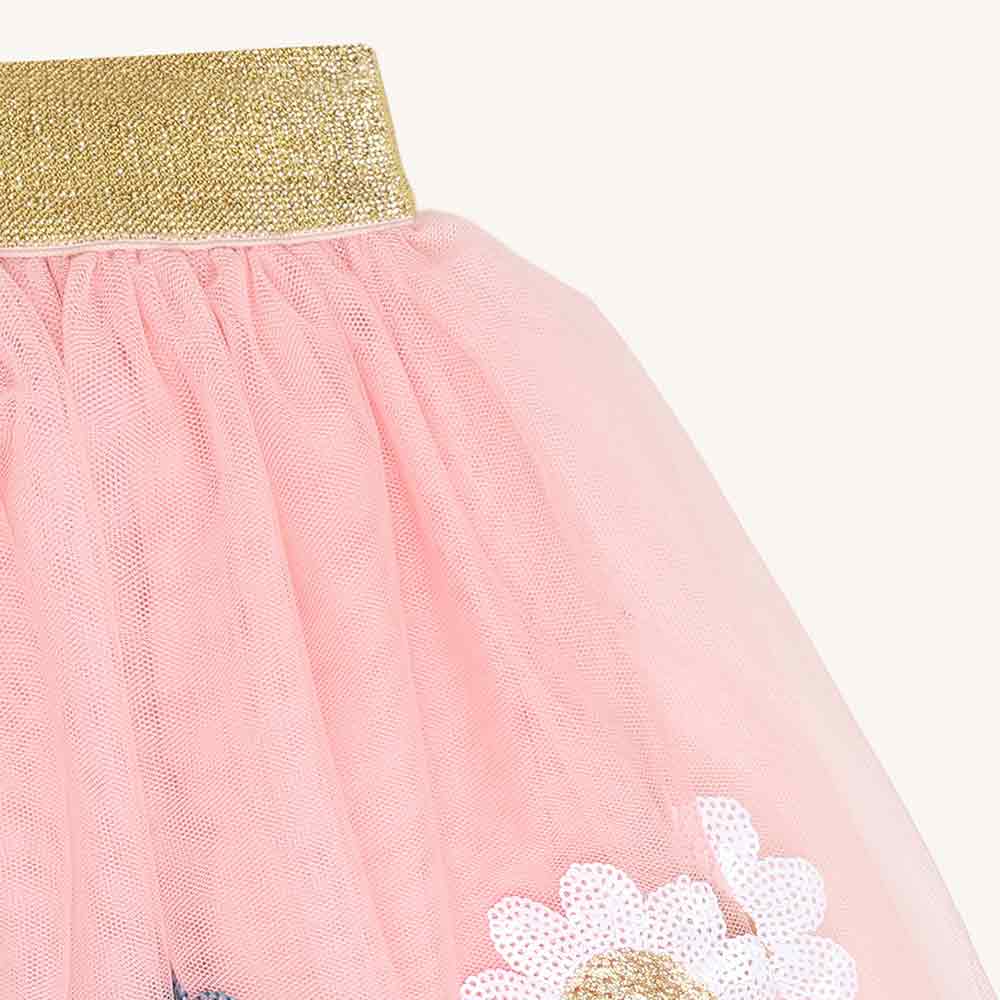 Cette jolie jupe en tutu de Hust & Claire est de couleur rose pâle avec une bande élastique dorée à la taille.