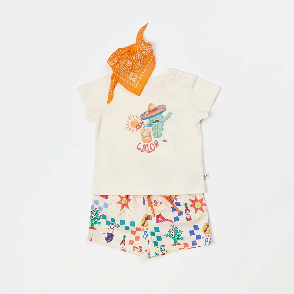 T-shirt bébé « Que calor » écru, pensé pour le confort et le style du quotidien. Confectionné en jersey 100 % coton biologique tricoté, il est doux et agréable sur la peau délicate des tout-petits.