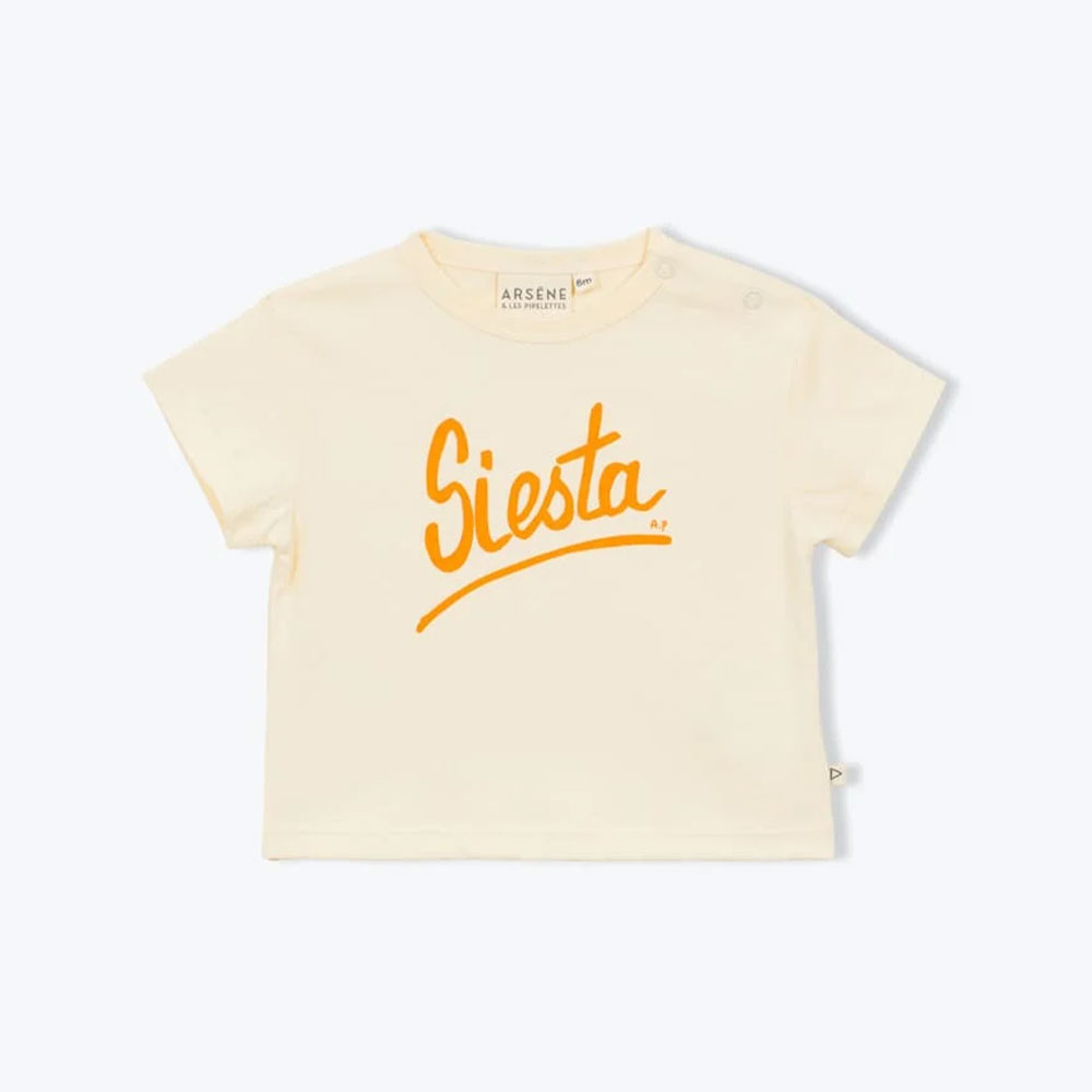 T-shirt bébé « Siesta » écru, pensé pour le confort et le style du quotidien. Confectionné en jersey 100 % coton biologique tricoté, il est doux et agréable sur la peau délicate des tout-petits.
