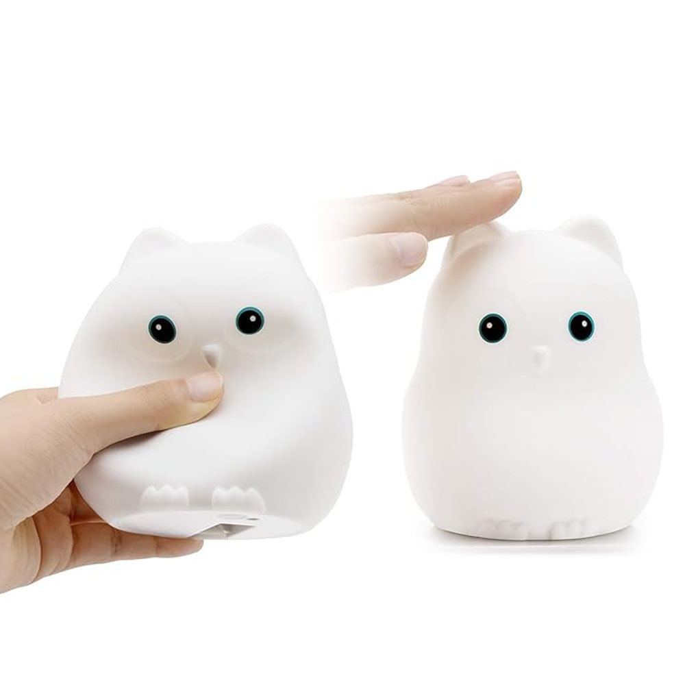 100% silicone lavable, d’une taille parfaite pour l’enfant. Cette veilleuse, sans pile, avec une batterie rechargeable par câble USB fourni, possède une autonomie de 10 heures minimum. Hormis le blanc, cette veilleuse s’éclaire de 8 autres couleurs au choix, que l’on peut changer, soit en touchant la veilleuse, soit avec la petite télécommande fournie. La télécommande permet également de régler l’intensité lumineuse, mais également la minuterie, si nécessaire, pour que la veilleuse s’éteigne d’elle même après 15, 30 ou 60 minutes.